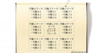 そこで2022年は、手帳を開くたびに、何度も「2022年マンダラ」を見て、目標を思い出すことで、日々の行動が少しずつ変わると思います。